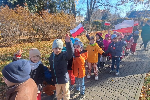 Dzieci wzięły udział w uroczystym przemarszu z okazji Święta Odzyskania Niepodległości.