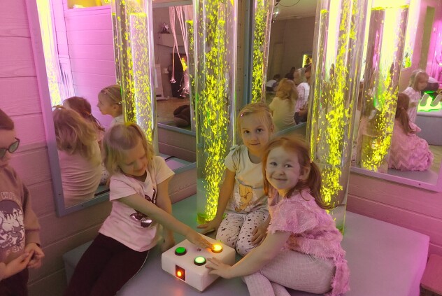 Podczas deszczowych i zimnych dni listopada świetnie bawimy się w przedszkolu korzystając z sali światła.