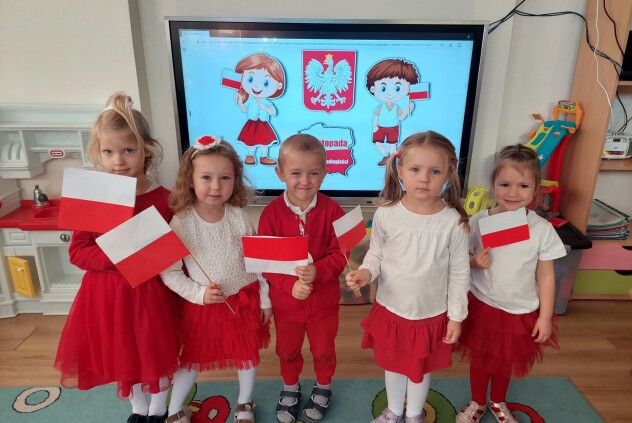 Nasza grupa aktywnie włączyła się do obchody Święta Niepodległości. W pięknych biało - czerwonych strojach śpiewaliśmy piosenki patriotyczne oraz uczestniczyliśmy w przemarszu ulicami osiedla trzymając w dłoniach flagi naszego kraju.